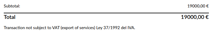 Invoices are issued with 0% IVA and should reference the applicable article of Spanish VAT Law (no sujeto a IVA por reglas de localización).